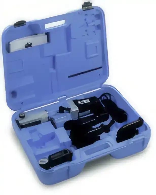 The high-quality transport case ensures safe and orderly transportation of the hand press and all accessories, including all profiles. Thanks to the sturdy and precisely fitting inserts in the case, every part stays in place and is reliably protected from knocks, dirt and moisture. The ergonomic handle and compact design make it easy to transport to different locations so that you always have all your equipment to hand and are perfectly prepared for any task.